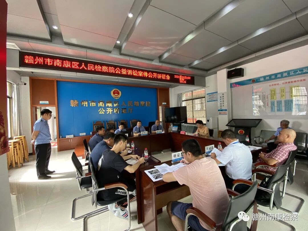 经走访调查后,南康区检察院公益诉讼办案组迅速与相关行政机关进行了沟通。由于无障碍设施涉及残疾人等特殊群体的权益,为践行双赢多赢共赢的检察司法理念,2021年6月29日上午,南康区检察院召开首次公益诉讼公开听证会,广泛听取意见。会议由南康区检察院党组成员、副检察长蓝泽海主持,并邀请三名人民监督员作为听证员参加,相关行政机关参加了听证会。