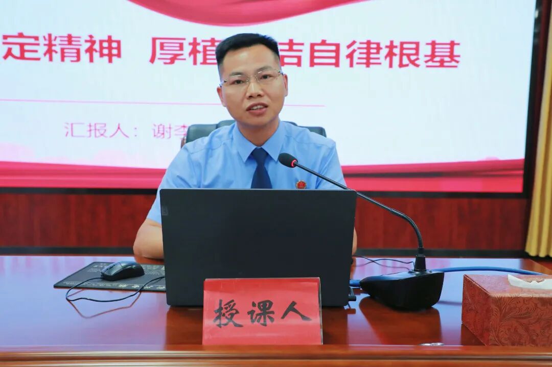 第三检察部主任谢李平结合自身丰富执纪经验,用身边案例深入解读中央八项规定精神,警醒启发全体干警。