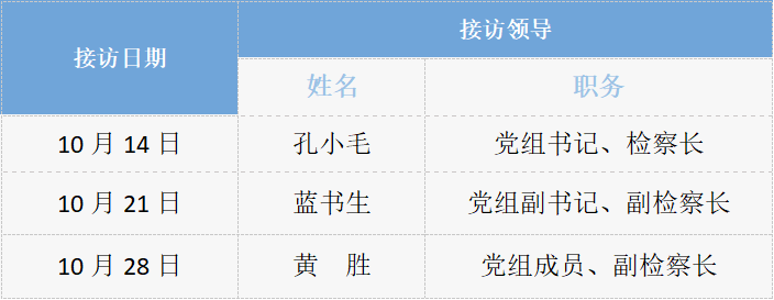 温馨提示:如若接访领导因工作冲突或其他特殊情况不能参与当天的接待日接访活动,我院将会根据实际情况安排其他领导接访。