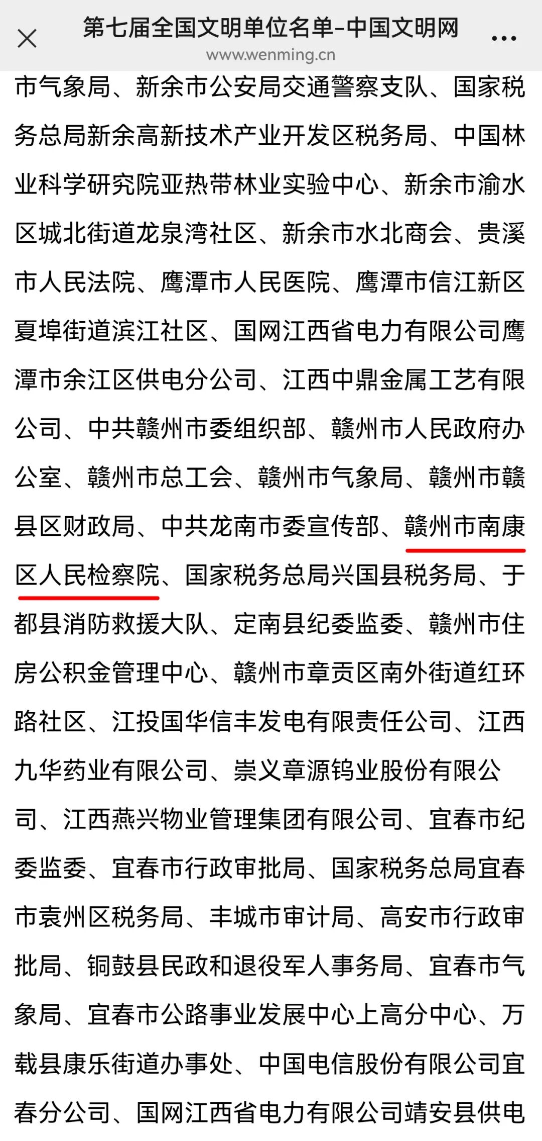 喜报!赣州市南康区人民检察院获评第七届全国文明单位