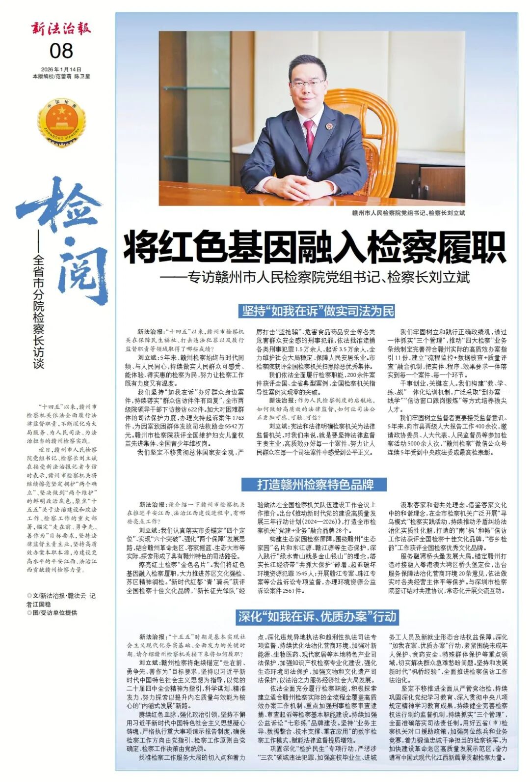 刘立斌:赣州检察将继续锚定“走在前、勇争先、善作为”目标要求,坚持以习近平新时代中国特色社会主义思想为指导,以党的二十届四中全会精神为指引,科学谋划、精准发力,努力探索以提升内在质量与效能为核心的“内涵式发展”新路。