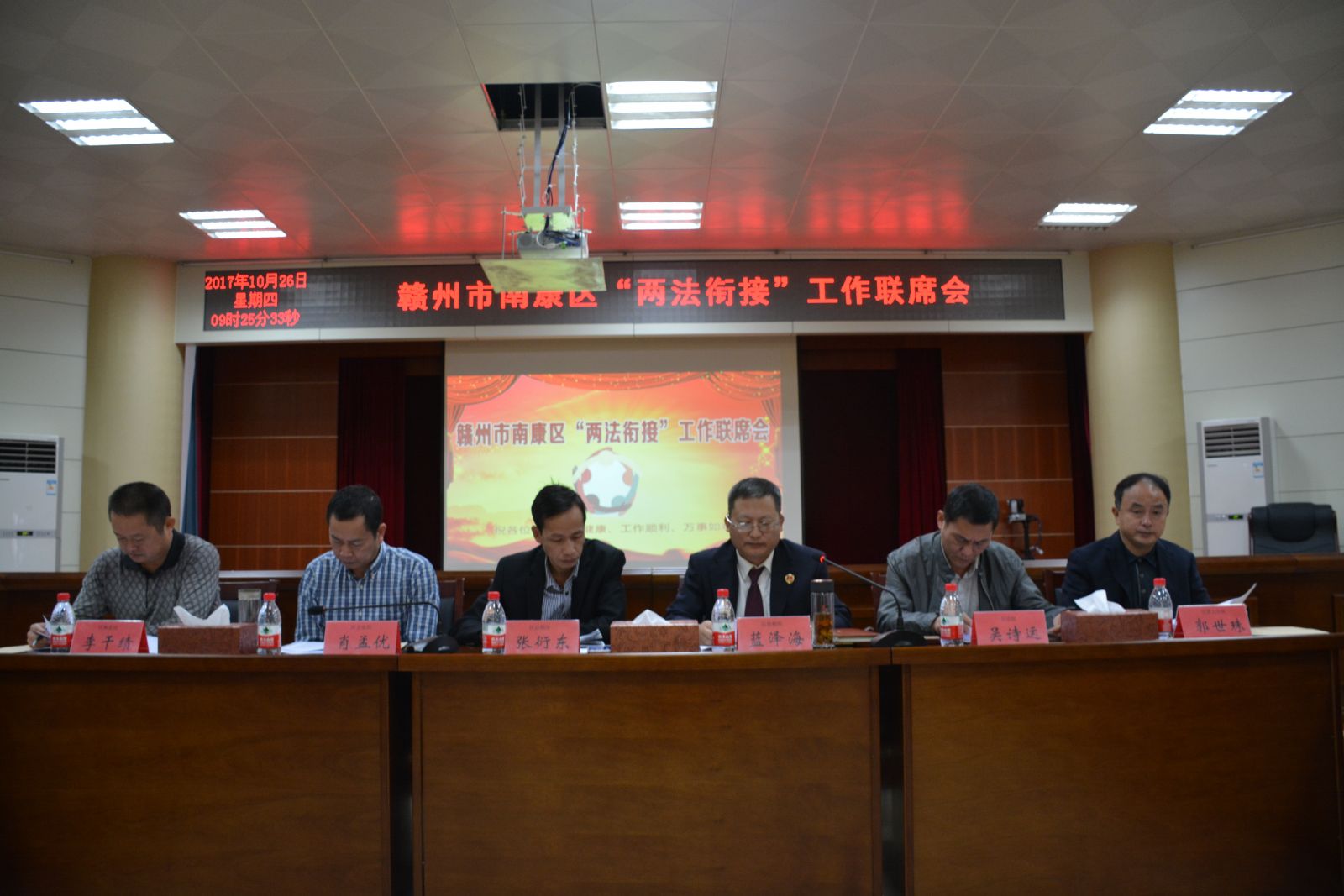 为进一步加强行政执法和刑事司法衔接工作,加大对违法犯罪打击的力度,10月26日,我院组织召开全区两法衔接工作联席会。党组成员、副检察长蓝泽海同志主持会议,区法制办、区公安局、区法院等36家单位的相关人员参加会议。