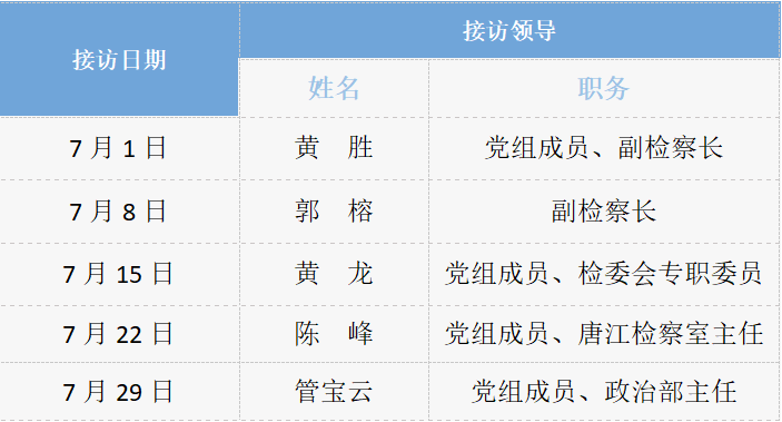 为深入贯彻习近平法治思想,践行以人民为中心发展思想,努力解决人民群众急难愁盼问题,提升12309检察服务中心服务质效和群众知晓度,提升人民群众对检察机关的满意度,现将2025年7月赣州市南康区人民检察院“检察长接访日”接访安排公告如下: