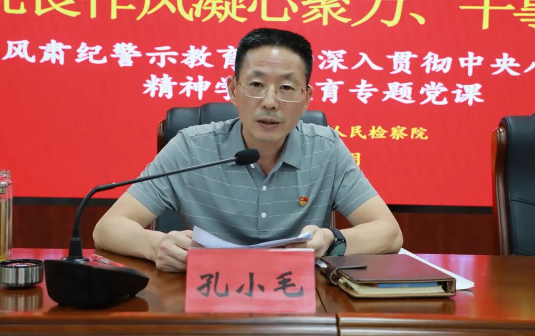 该院党组书记、检察长孔小毛同志以“久久为功 化风成俗,以优良作风凝心聚力、干事创业”为题,为全体干警讲授专题党课。党课从历史镜鉴、政治要求和实践路径三个层面,系统阐述了深入贯彻中央八项规定精神学习教育、加强检察机关作风建设的重要性和具体举措,为全体干警带来了一场深刻的党性教育。