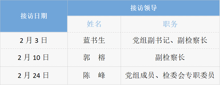 温馨提示:如若接访领导因工作冲突或其他特殊情况不能参与当天的接待日接访活动,我院将会根据实际情况安排其他领导接访。